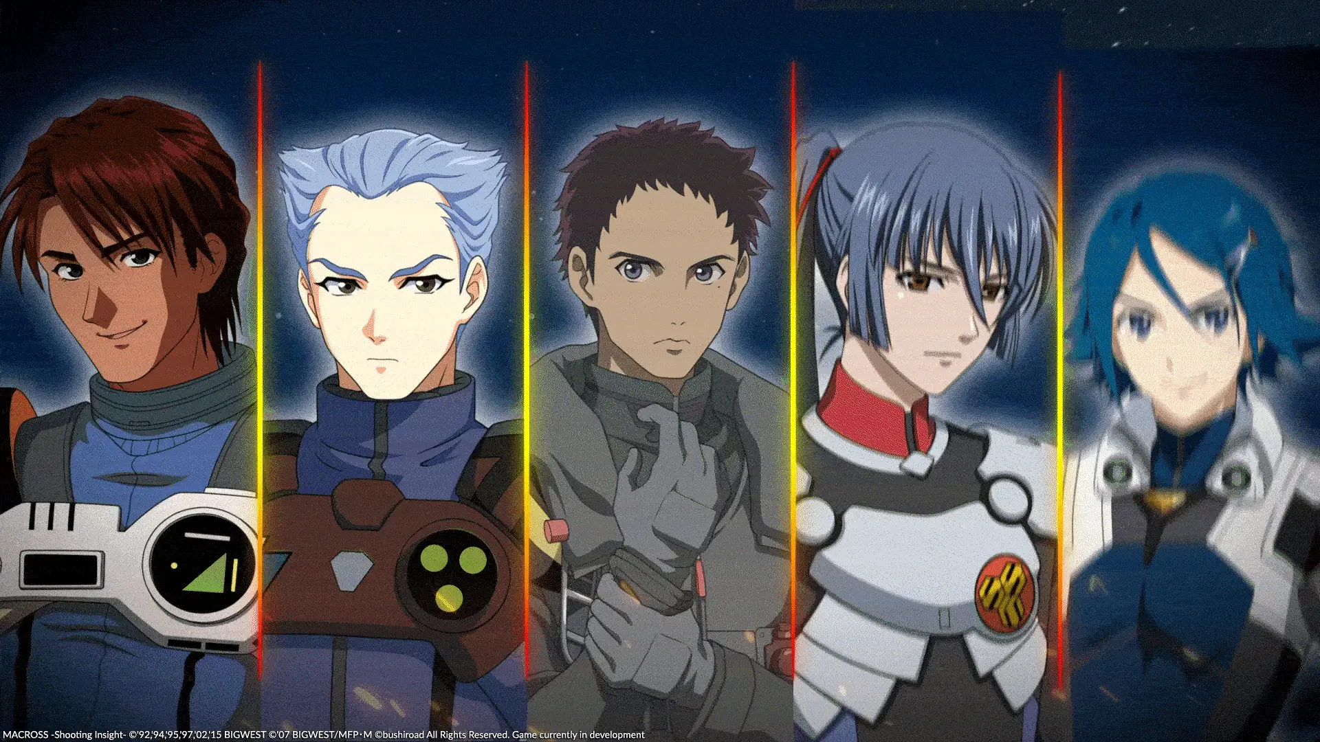 Le jeu ne se contente pas d’être un simple shoot’em up, il reprend les codes et l’ambiance de Macross à travers une histoire originale où plusieurs dimensions s’entremêlent. On retrouve des personnages issus de cinq séries Macross :
