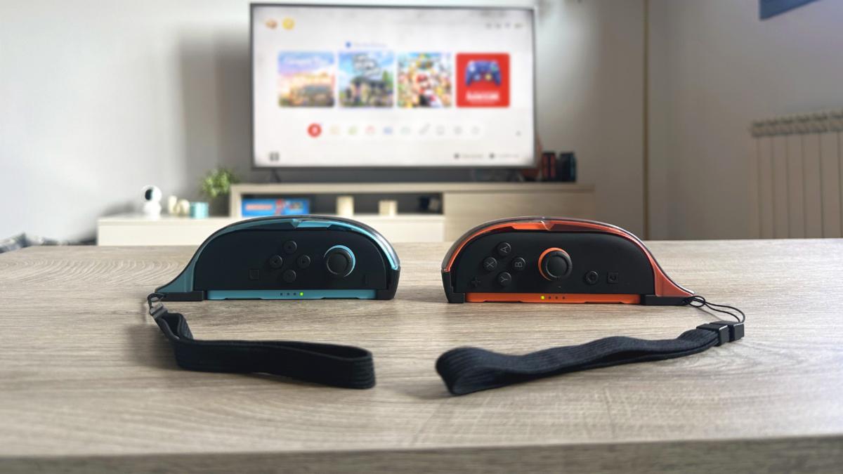 Chacun des adaptateurs se pare d’une coque translucide assortie aux couleurs des Joy-Con 2 et comporte une dragonne pour sécuriser la prise en main. La structure agrandie et texturée vise à réduire la tension au niveau des poignets lors de sessions prolongées, tout en préservant l’accès complet à tous les boutons de façade.